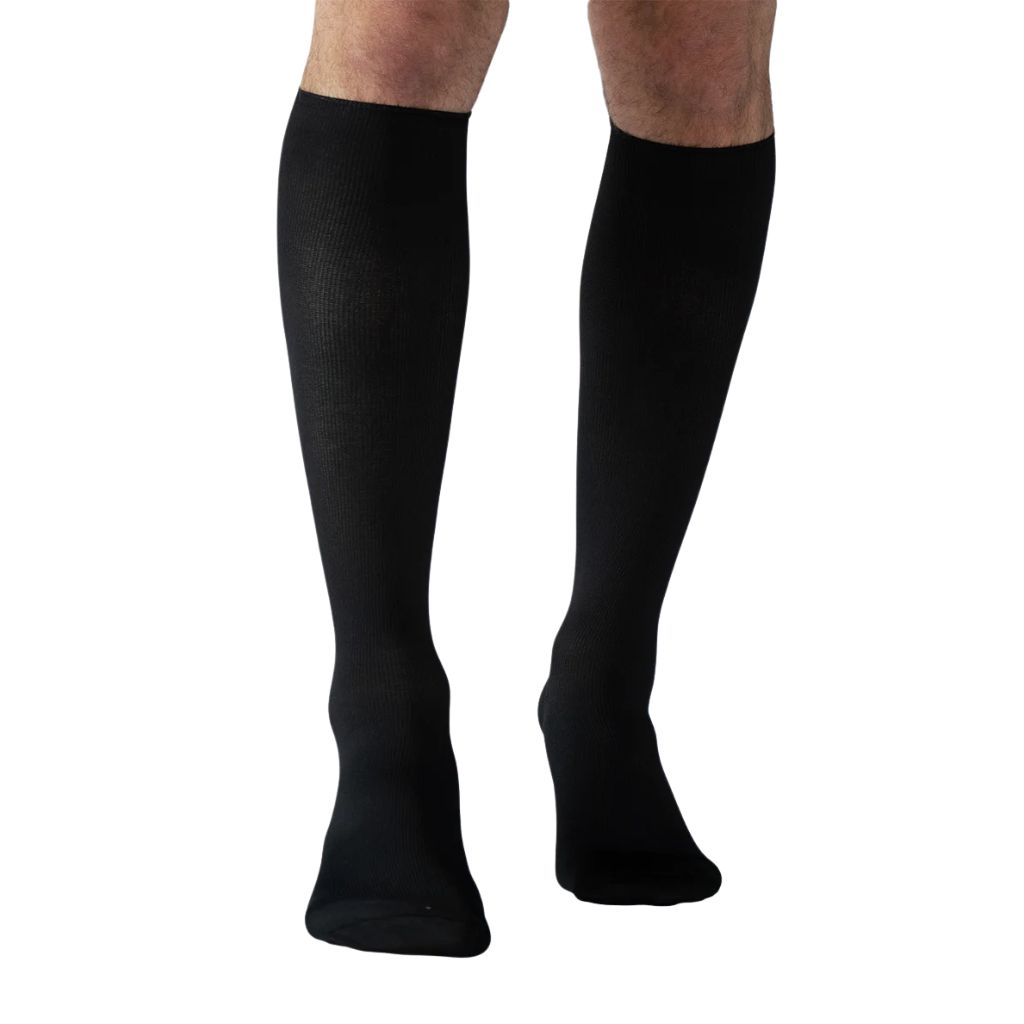 El calcetín de compresión graduada leve está diseñado para brindar bienestar y soporte circulatorio en el uso diario, especialmente durante viajes prolongados o jornadas extensas de pie o sentado.